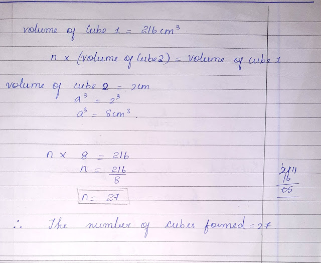 cube of side 6 cm is cut into a number of cubes, each of side 2 cm. Find